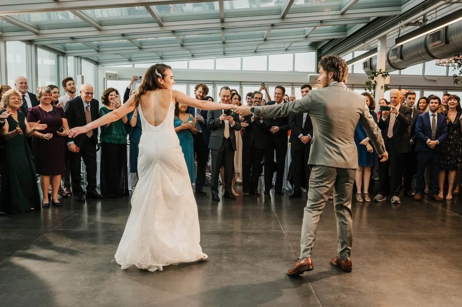 The retractable roof is a genuine feature, not a gimmick. If your wedding is in warmer months, plan your timeline to take full advantage of opening the roof during cocktail hour or early in the reception when energy is high. The moment it opens is something guests consistently remember.